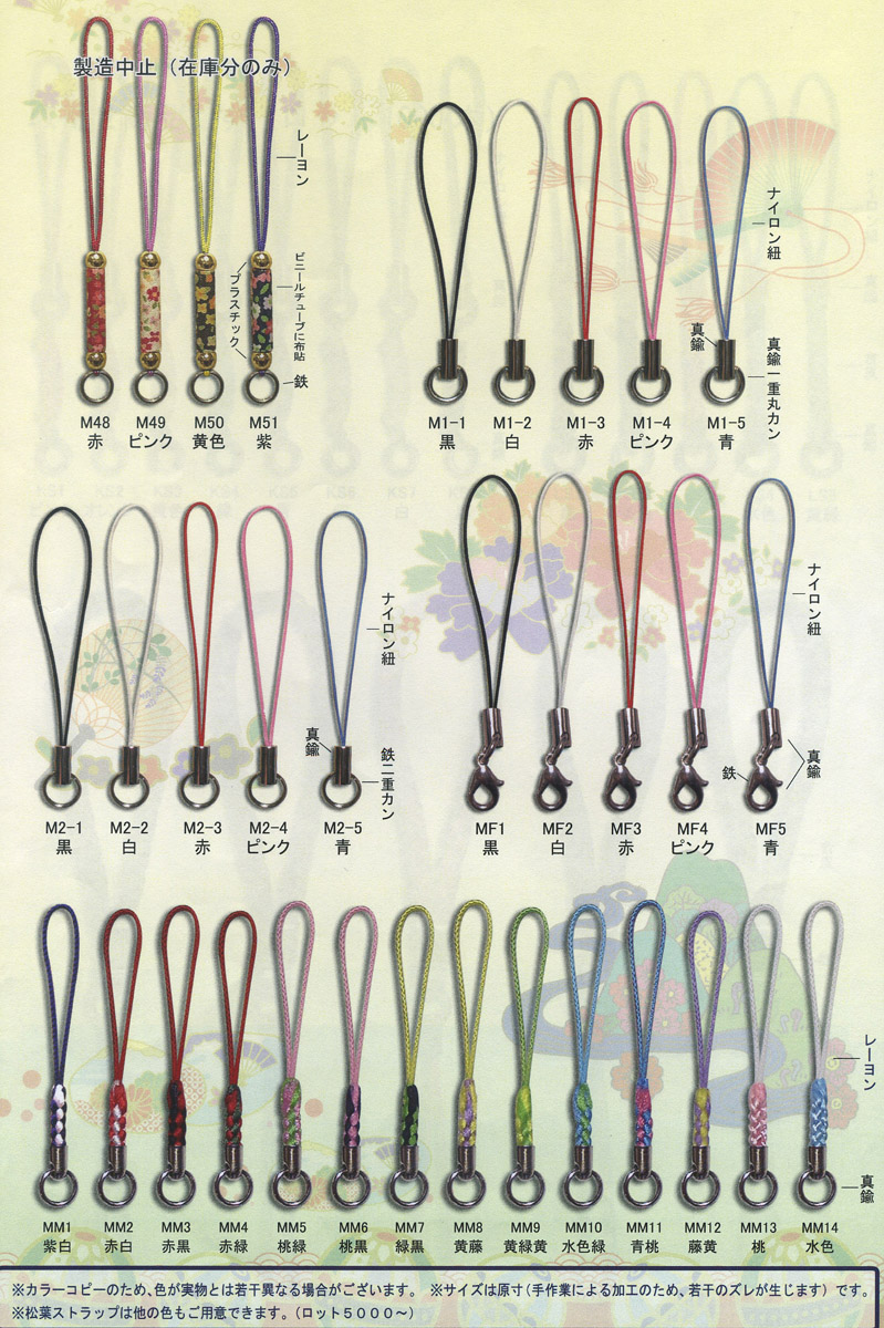★ひも部分の素材はレーヨン、金具部分の素材は真鍮,カンの部分は鉄です。