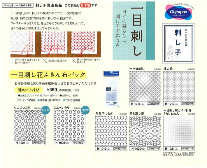 | 一目刺し花ふきん布パック 一目刺し 刺し子 刺しゅう 布 布パック ガイド olm |