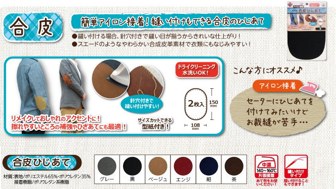 簡単アイロン接着!縫い付けもできる合皮のひじあて