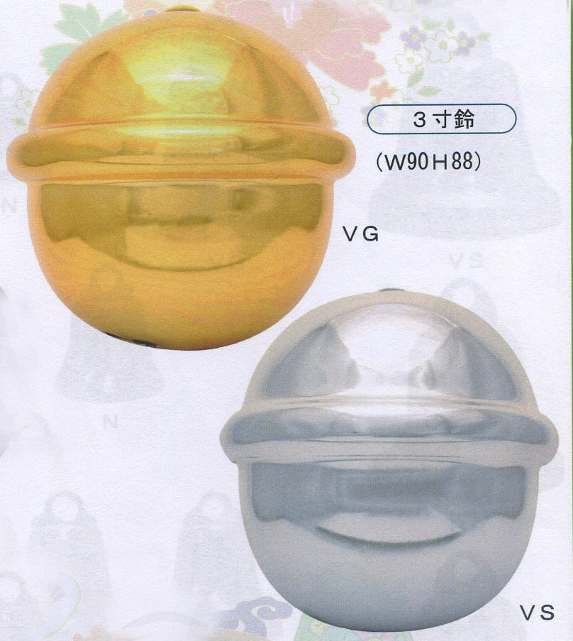 福鈴三寸真空メッキ金(上金)と銀。(幅90×高さ88mm)