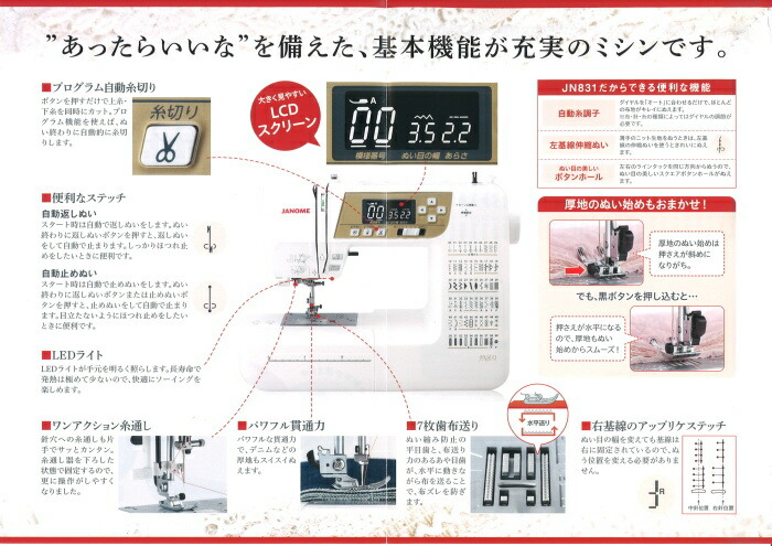 プログラム自動糸切り機能付コンピュータミシン JN831