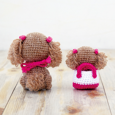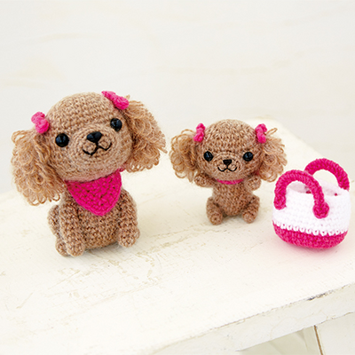 写真の作品が作れるように材料とテキストをセットにした「手芸パック」です!ふわふわ耳のトイプードルの親子♪バッグは取り外しできます。