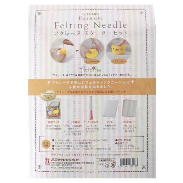 用意するもの 【フェルティング用ニードル極細・フェルティング用マット】又はアクレーヌスターターセット・はさみ・目打ち・ボンド