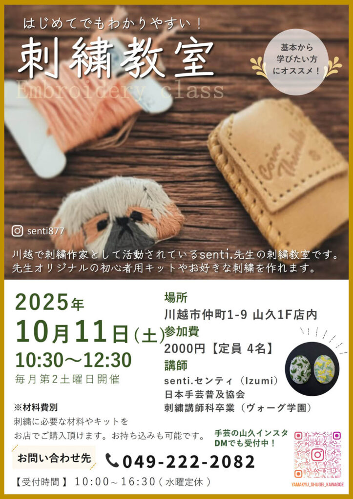 2025年10月11日(土) 10:30~12:30に川越の山久(小売部)にて行います。
