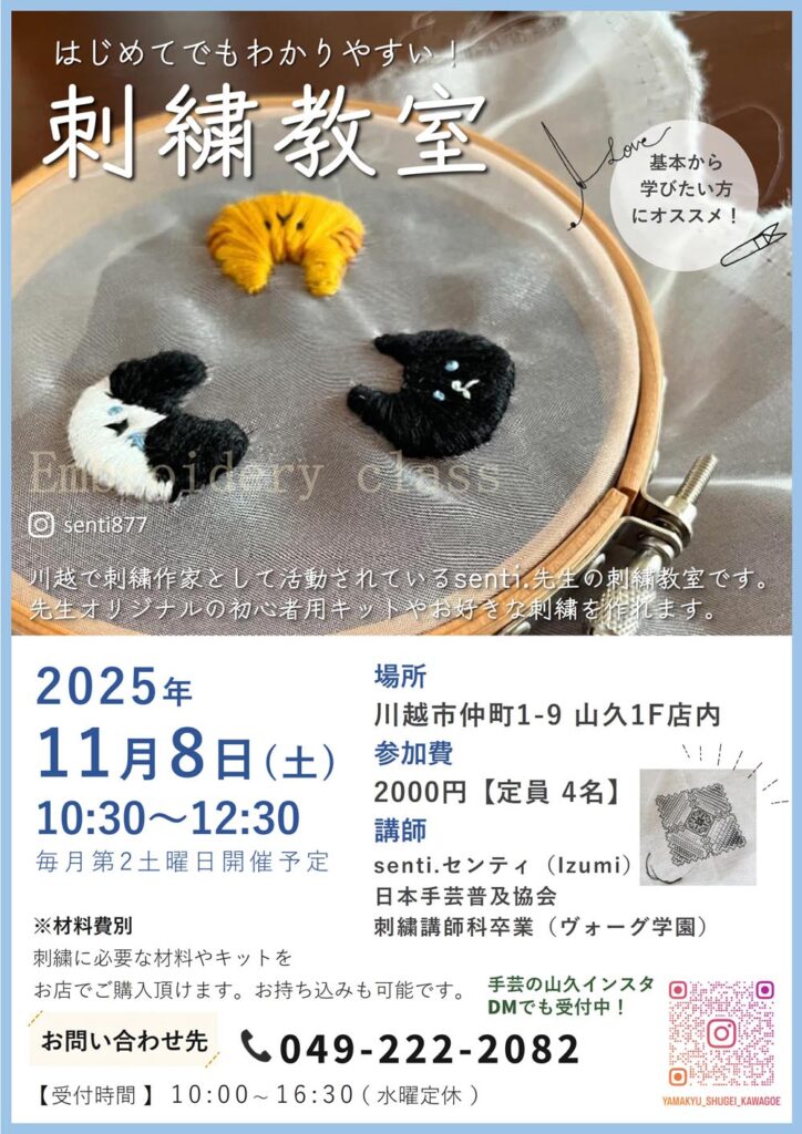 2025年11月8日(土) 10:30~12:30に川越の山久(小売部)にて行います。